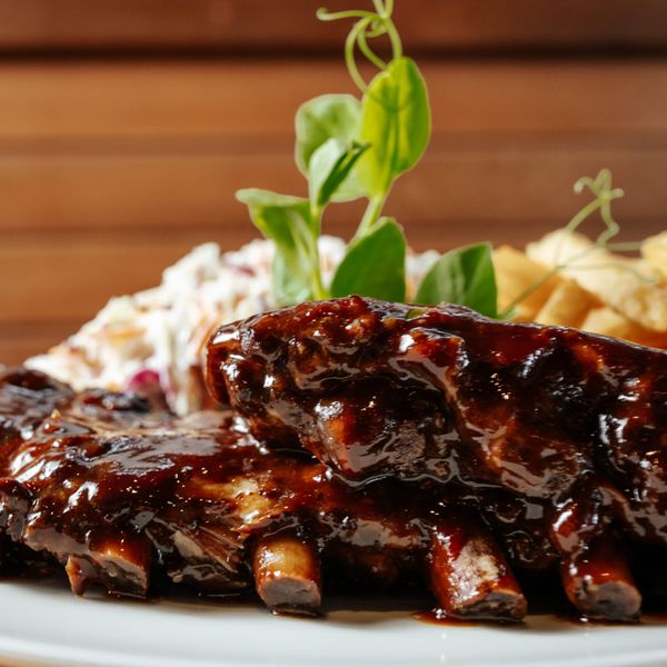- BBQ Pork Ribs w’ House Made Sauce, Chips & Coleslaw (GF, DF)